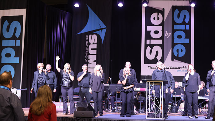 The praise team from First Baptist Church, Lexington, leads messengers in a time of worship at Summit. — Photo by Dan Ferrell