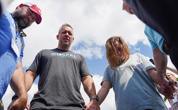 Organizers tallying the day’s numbers said volunteers knocked on the doors of 10,409 homes, had 1,817 gospel conversations, prayed with 2,251 people and saw 364 people place their faith in Jesus.