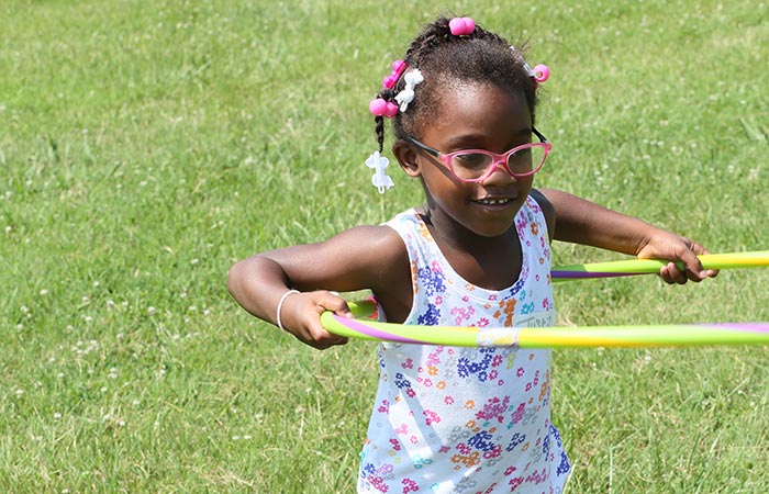 Justice Spivy enjoys the hula hoops during recreation time held at Camp Journey at Beaver Dam Baptist Church, Knoxville.