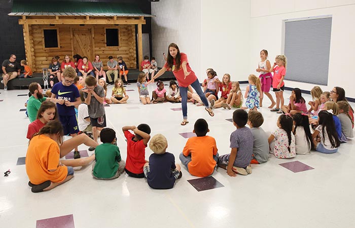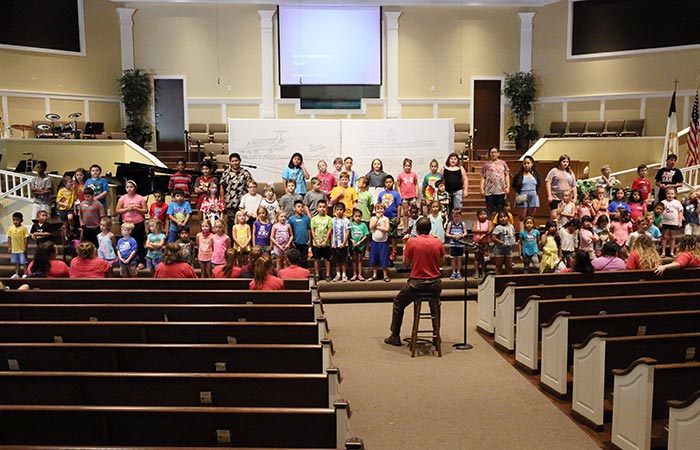 Dave Hankins leads children in practice for the musical they presented Thursday evening (July 20). Parents and friends were invited to attend the musical which was the culmination two weeks of Camp Journey, The camp was sponsored by Beaver Dam Baptist Church and used volunteers from the church and others, including a team from the Tennessee Baptist Mission Board.