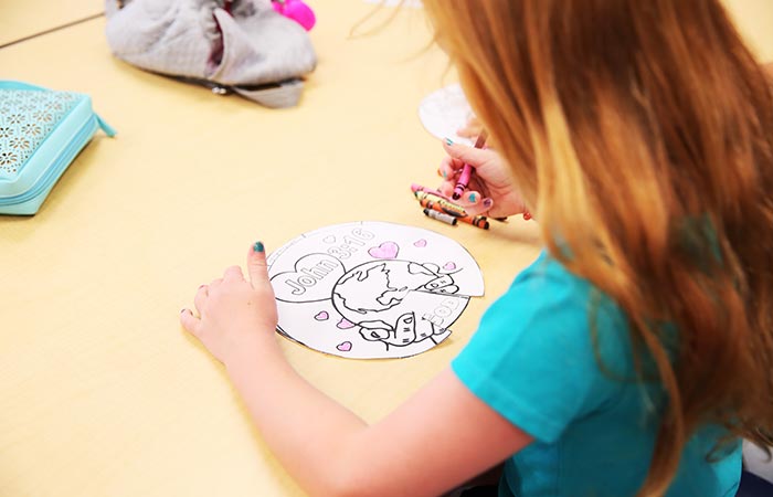 A camper at Camp Journey colors a page reflecting the teaching found in John 3:16.
