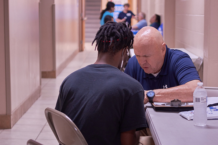 Bob Filson, counsels with a young man at the medical clinic hosted by Robertson County Baptist Association.