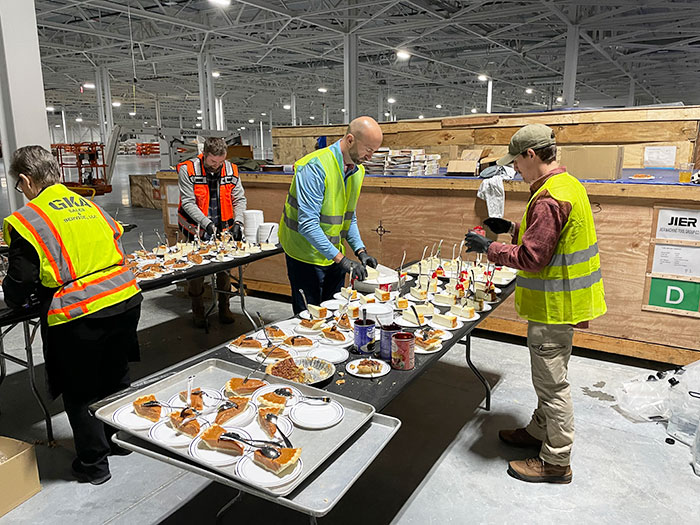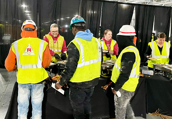STANTON — About 40 volunteers from four churches in Fayette Baptist Association joined together Nov. 21 to provide a Thanksgiving meal to 1,000 construction workers at the BlueOval City job site in Stanton.