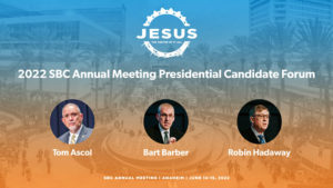 Ascol, Barber, and Hadaway are currently the only announced candidates for the position. The election of a new SBC president will take place on June 14 at the 2022 SBC Annual Meeting in Anaheim, Calif. Current SBC president Ed Litton announced earlier this spring that he had chosen not to seek a second term in the position.