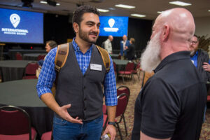 New IMB trustee Nathan Rostampour, from North Carolina, talks with Zane Pratt, vice president of global training, at the trustee meeting held in Phoenix Feb. 14-15. Rostampour attends Summit Church. — IMB photo