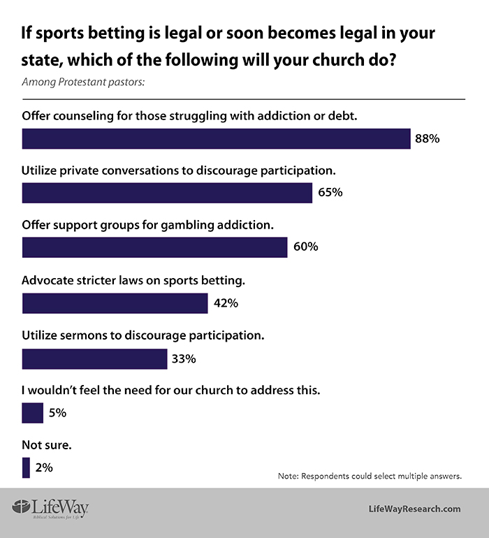 Almost 9 in 10 pastors (88 percent) say if their state legalizes sports gambling, they will offer counseling for those struggling with debt or addiction.