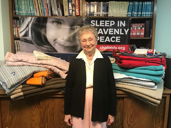 An added bonus for the Jacksboro chapter has been the efforts of Nell Rinehart, a member of First Baptist, who has made 110 quilts to provide with the beds.