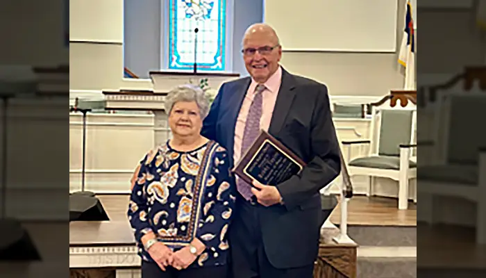Oaklawn Baptist Church, Winchester, recently celebrated the nearly 48 years of service of Bobby Taylor who has served faithfully as minister of music at Oaklawn as well as a deacon and Sunday School teacher. Shown with him is his wife, Elaine.