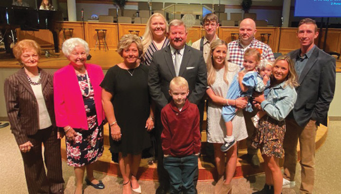 Grace Baptist Church, Tullahoma, celebrated the 20th anniversary of pastor Tim McGehee, center, with a dinner at the church on Oct. 17. He was joined by several members of his family.
