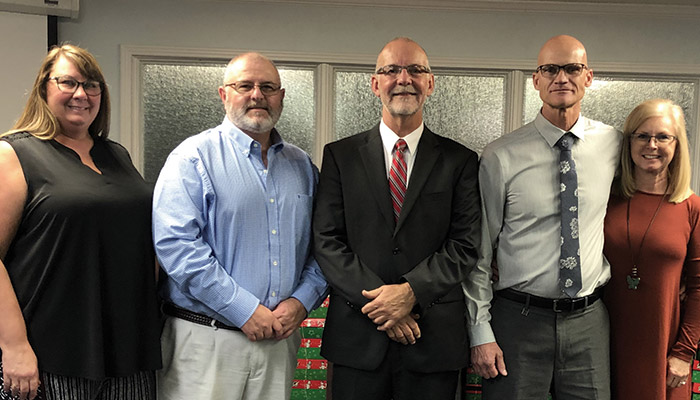 Three Rivers Fellowship, Waverly, recently ordained two new deacons: Mike Matlock and his wife Becky, left; pastor Wayne Purcell, center; and Chris Dellinger and his wife Rhonda.